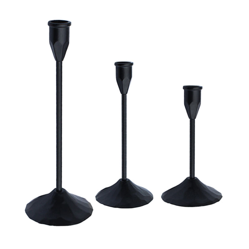 These elegant black metal candle holders are perfect for creating a romantic ambiance at wedding receptions and dinner parties. Their tall design and rich bronze finish add a touch of sophistication to any home decoration, making them a stunning centerpiece for special occasions.